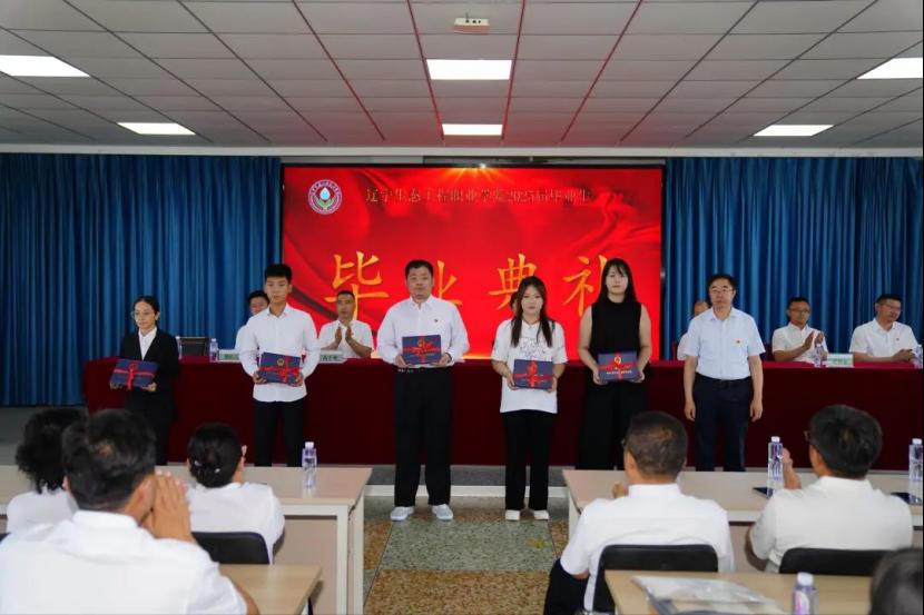 副院长潘玉昆、副院长于海明向学生代表颁发毕业证书。