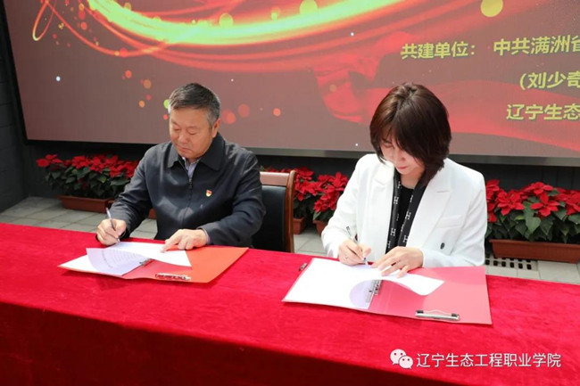 中共满洲省委旧址纪念馆、刘少奇旧居纪念馆副馆长孙中美与学院党委书记刘占军共同签署了共建协议书,学院与中共满洲省委旧址纪念馆结成共建单位,学院将充分利用党史学习教育基地红色资源,以党史学习教育、爱国主义教育以及红色文化教育为主线,引导师生树立热爱祖国报效祖国的世界观、价值观、人生观,校馆共聚教育合力,共同受益、共同发展。